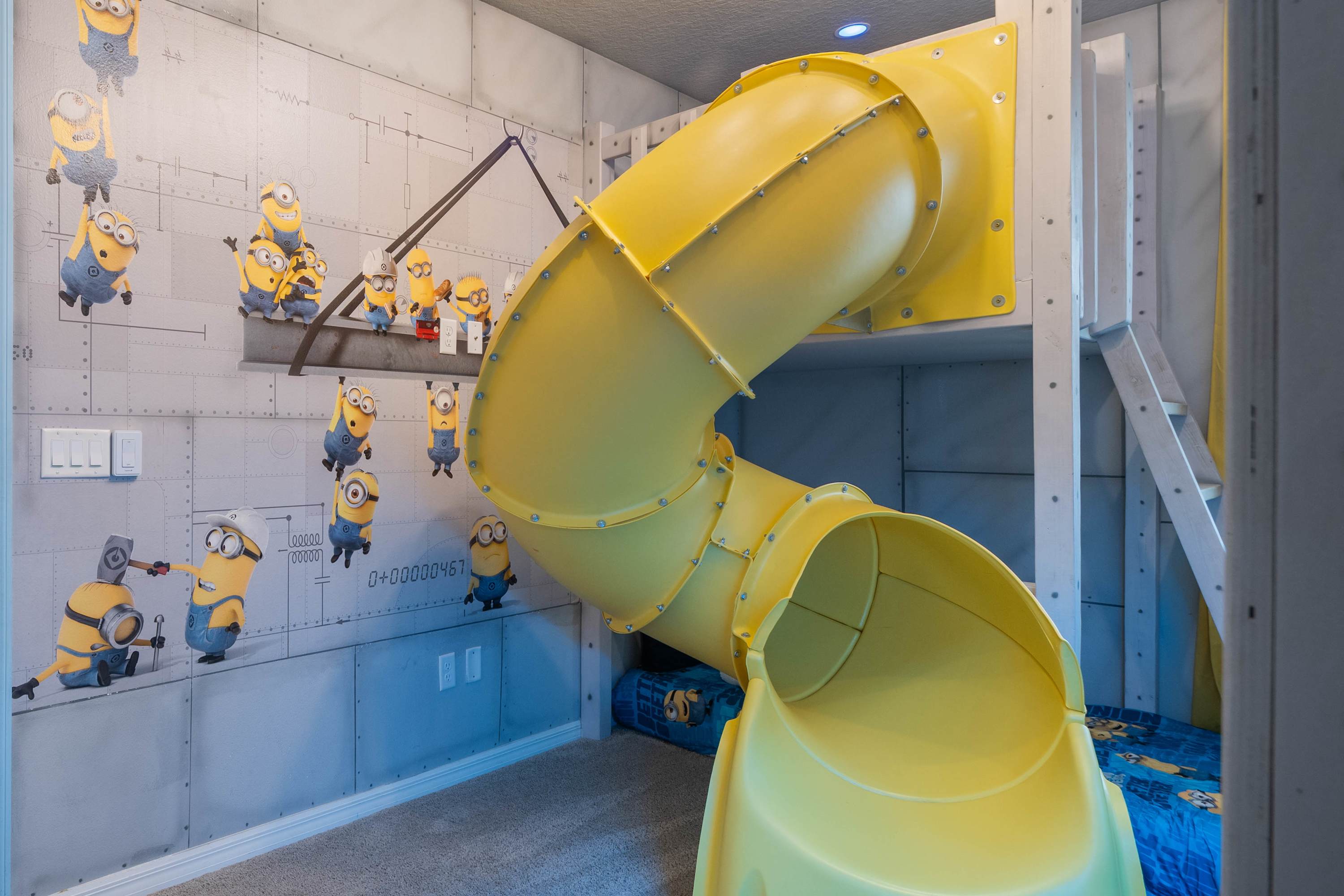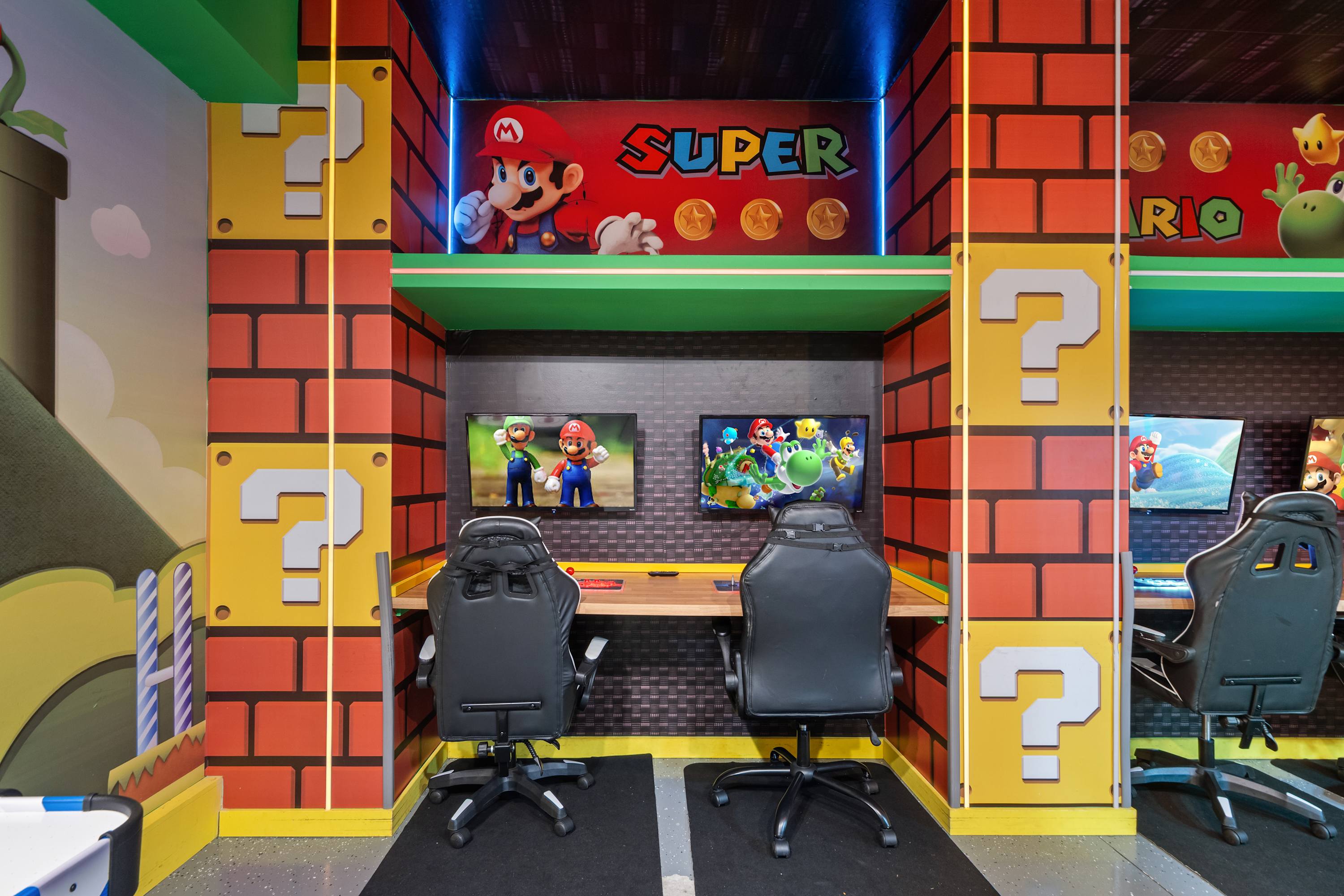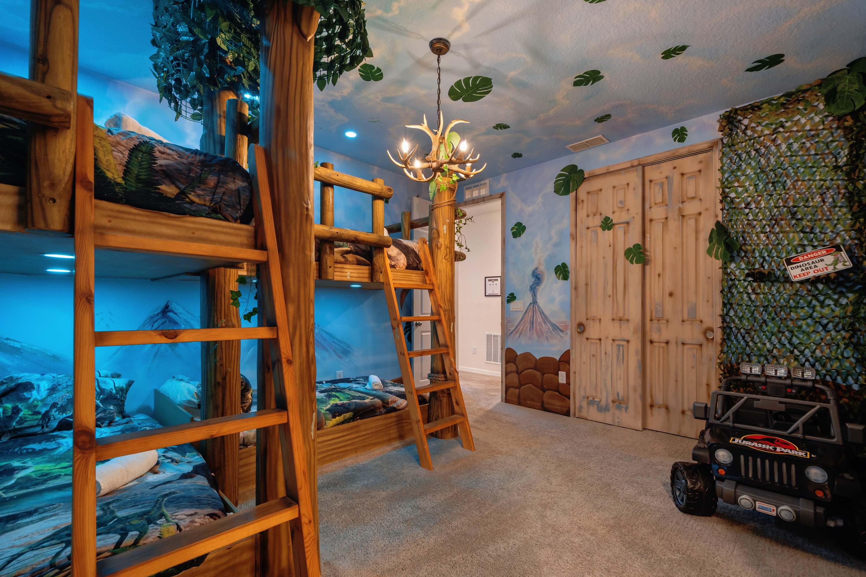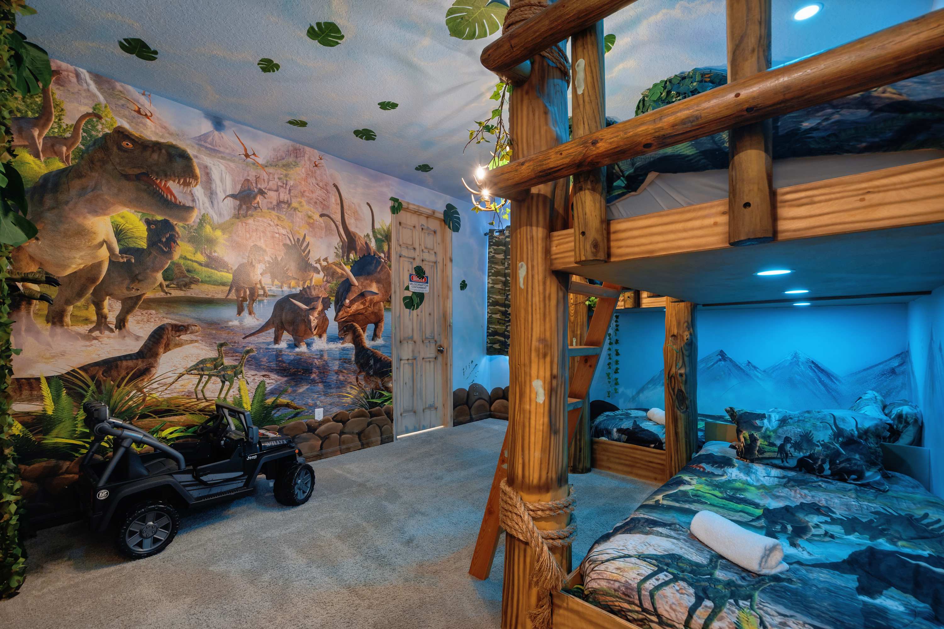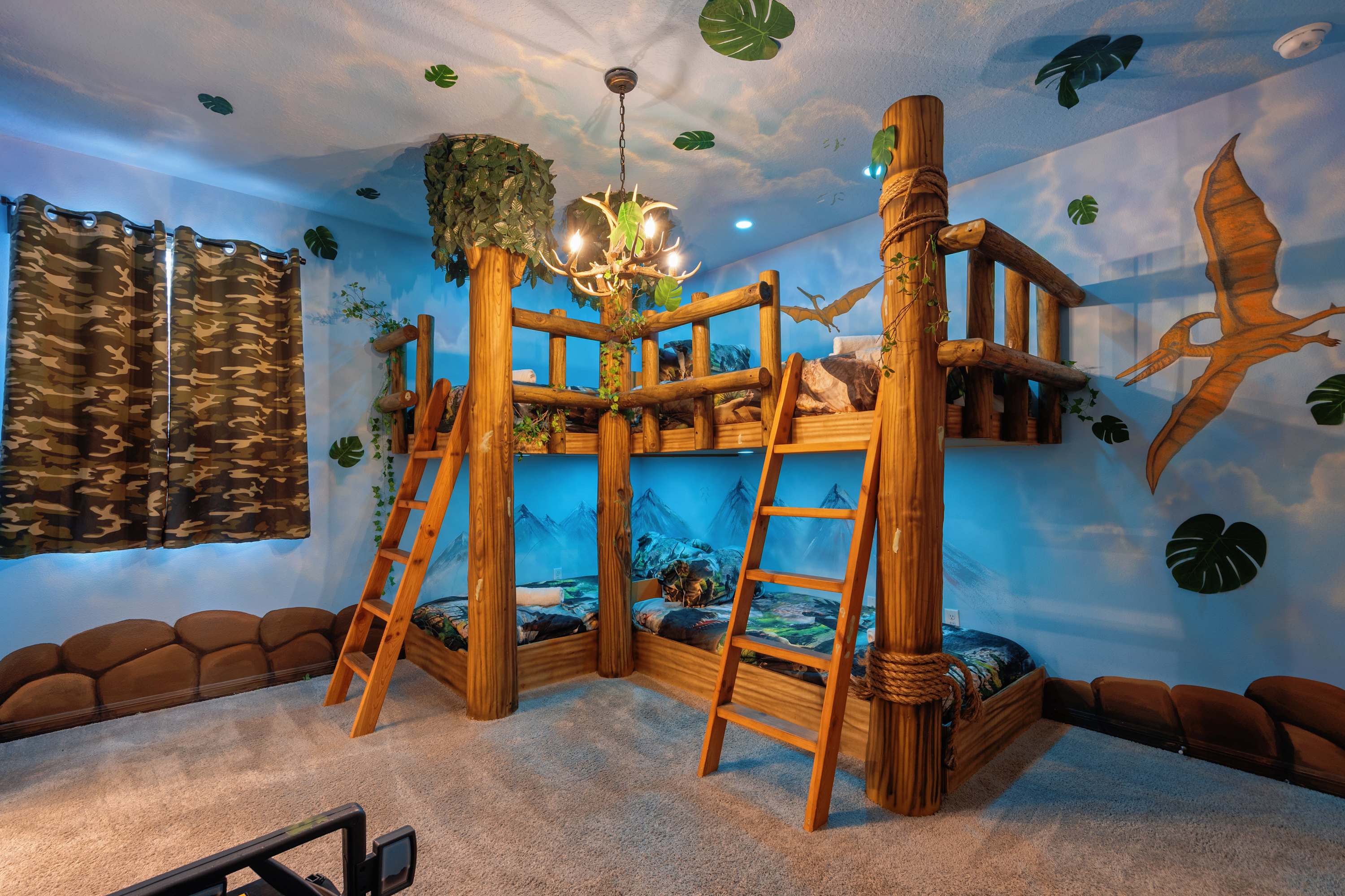 Take the stairs up to the second level and find a living space with luxe leather sofas that surround the big screen TV – an ideal hangout area for teens and kids giving the adults a chance to unwind downstairs.