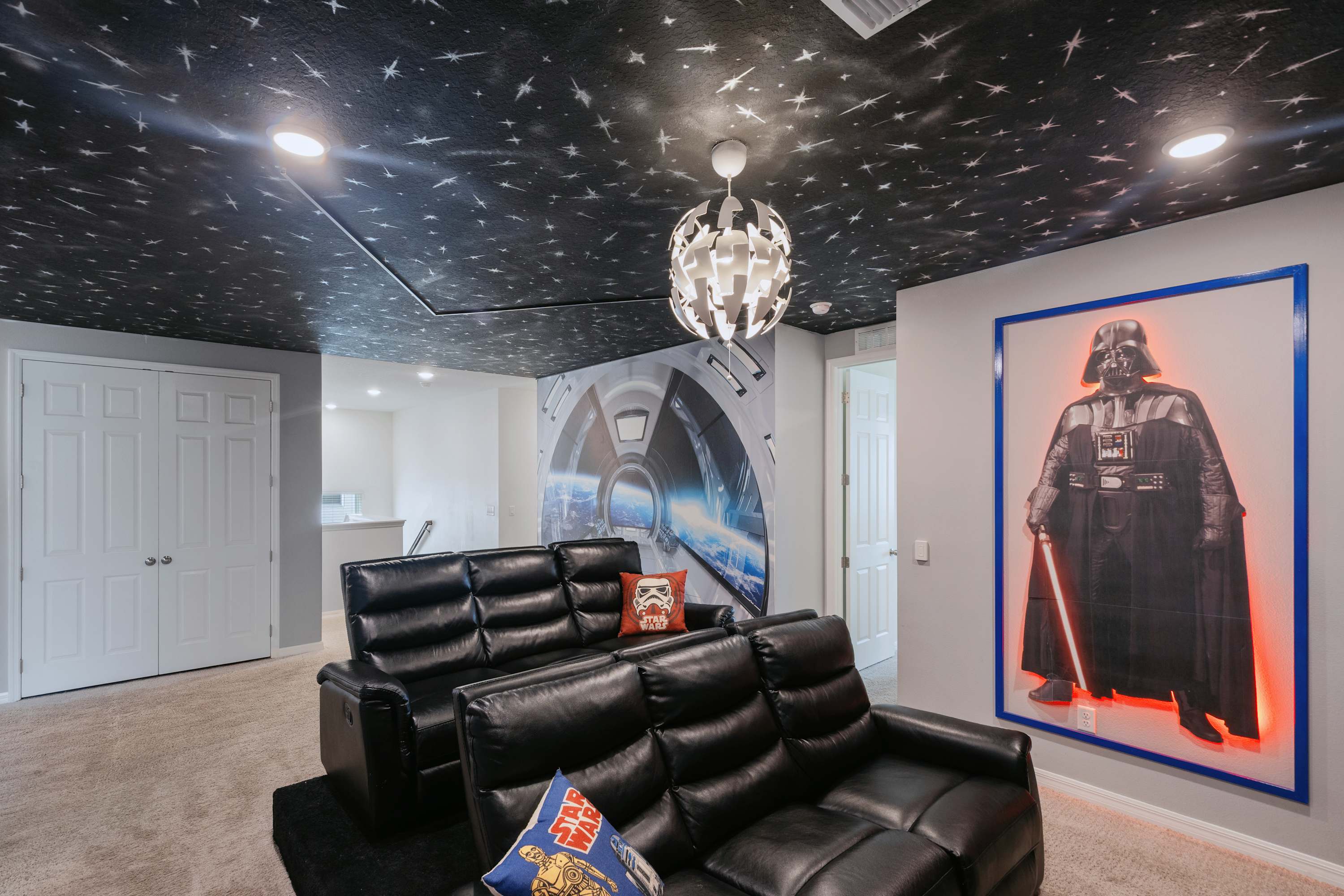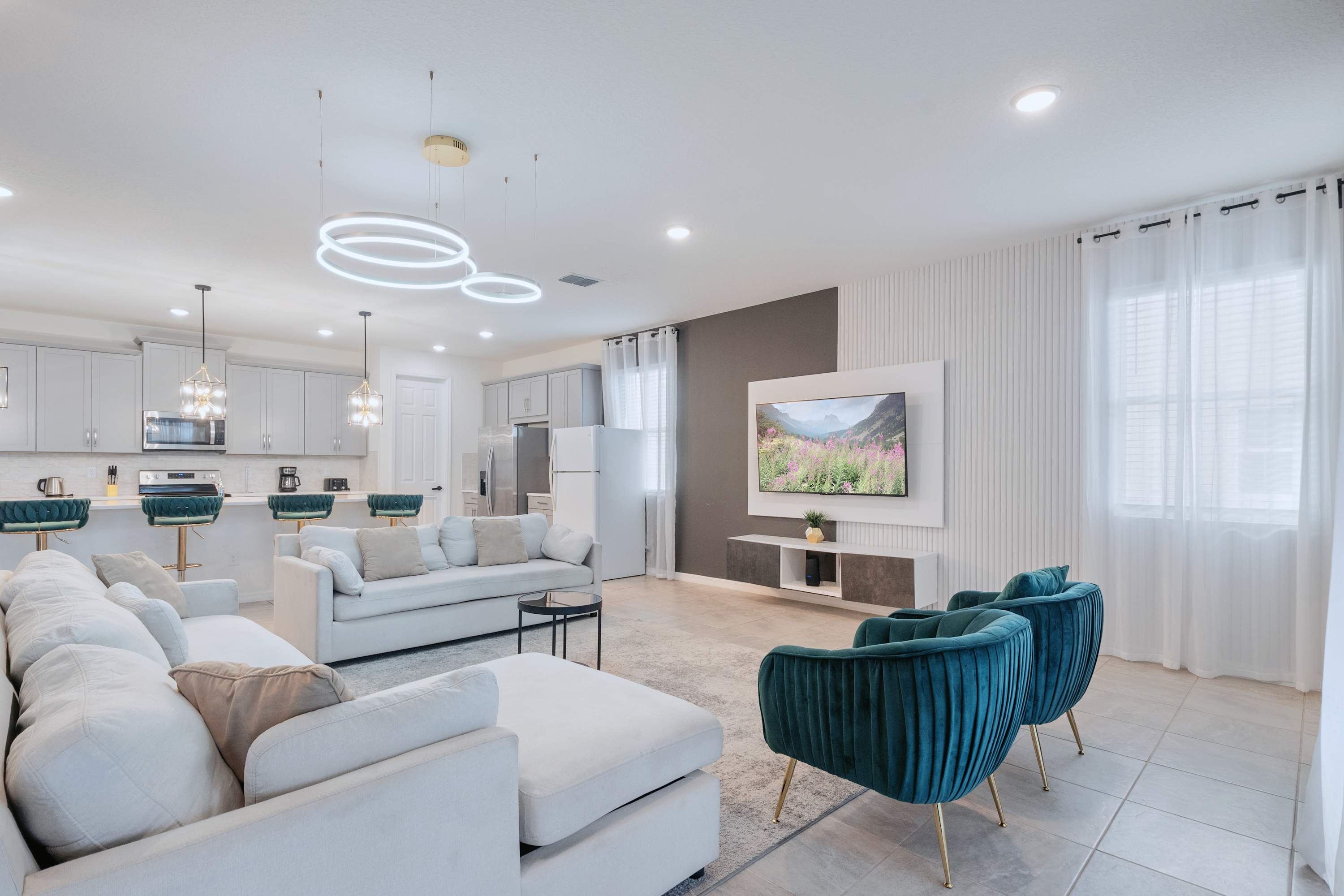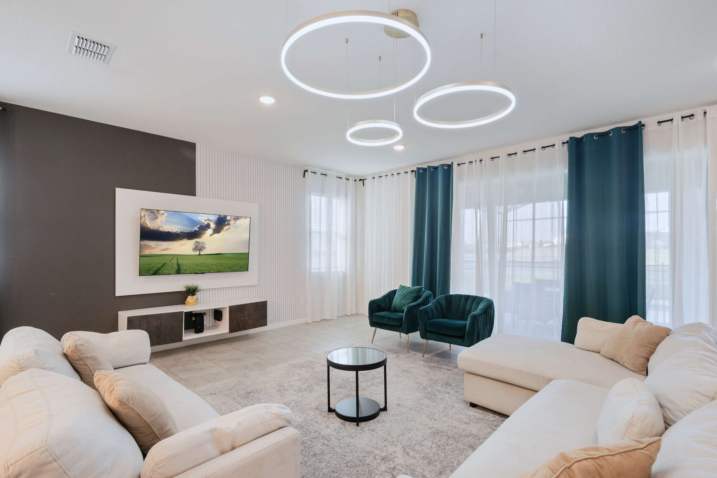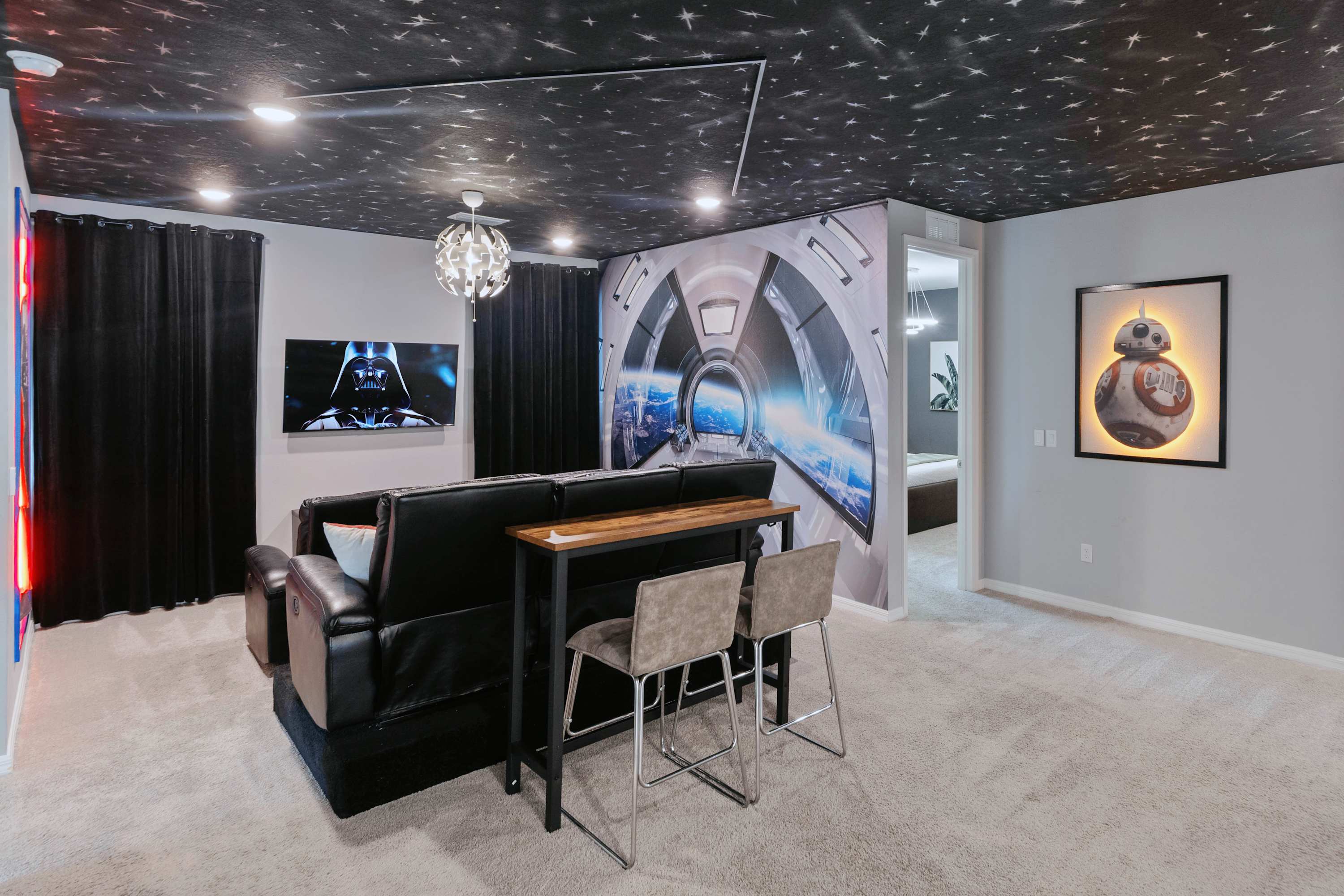Relax on the lounge after a day spent at Disney and stream all your favorites on the big screen Smart TV – the perfect place to gather together for a cozy movie night in.