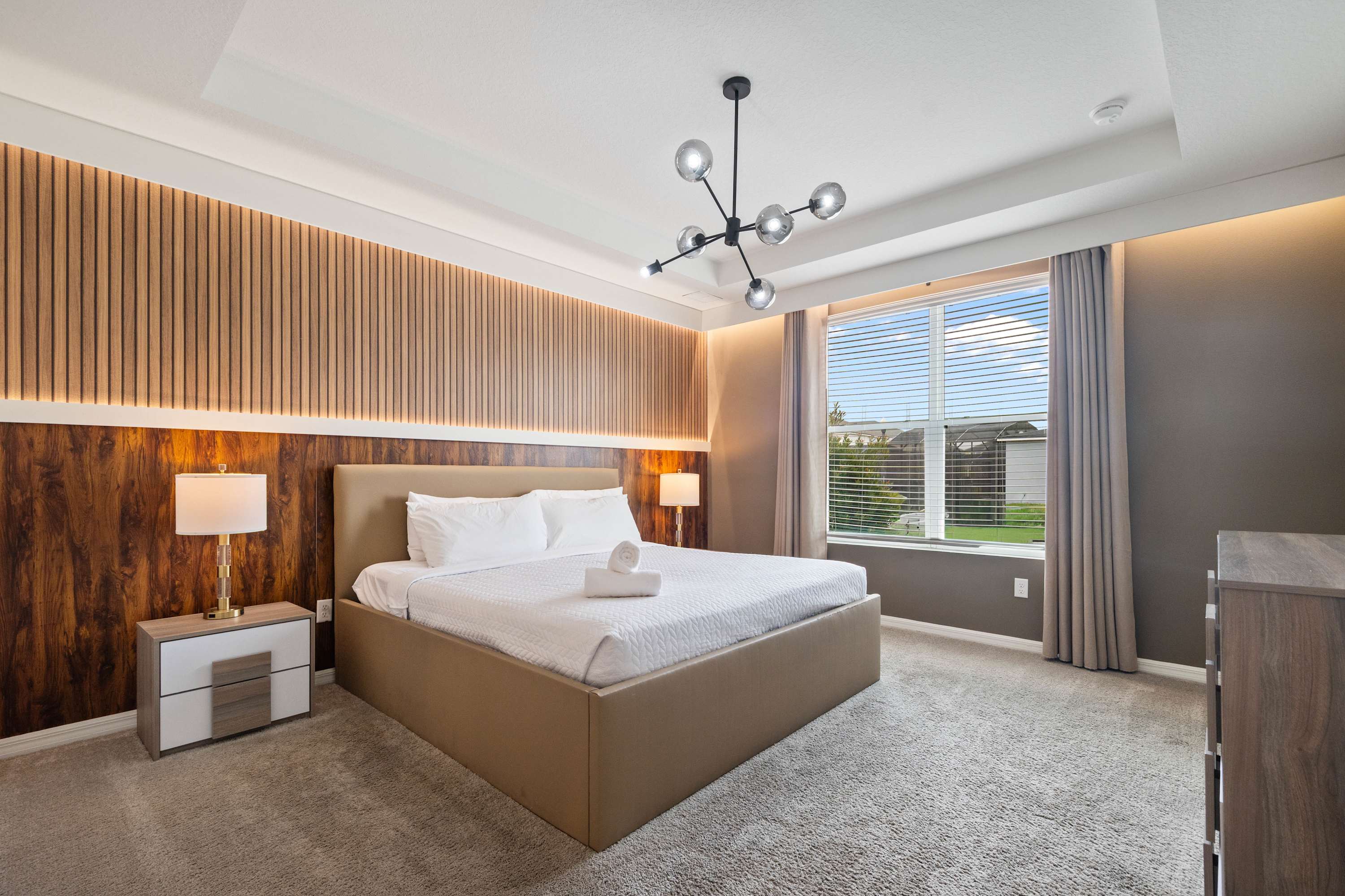 This lakeview luxury home is located within the exclusive Solara resort providing you the easy access to Orlando's theme parks, dining, & top shopping.