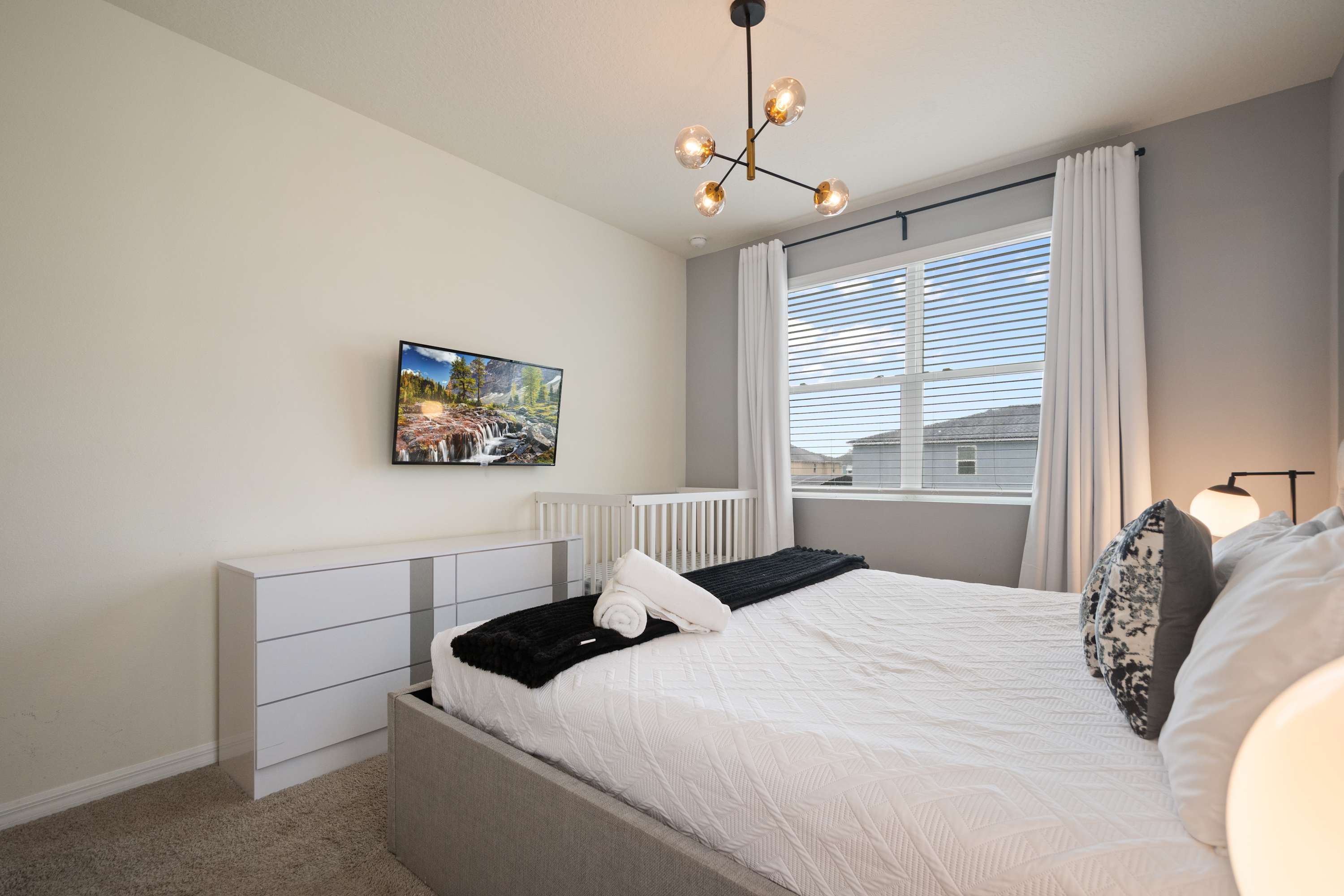 🧡 Bedroom 1: King sized bed and crib with ensuite shower (First Floor)