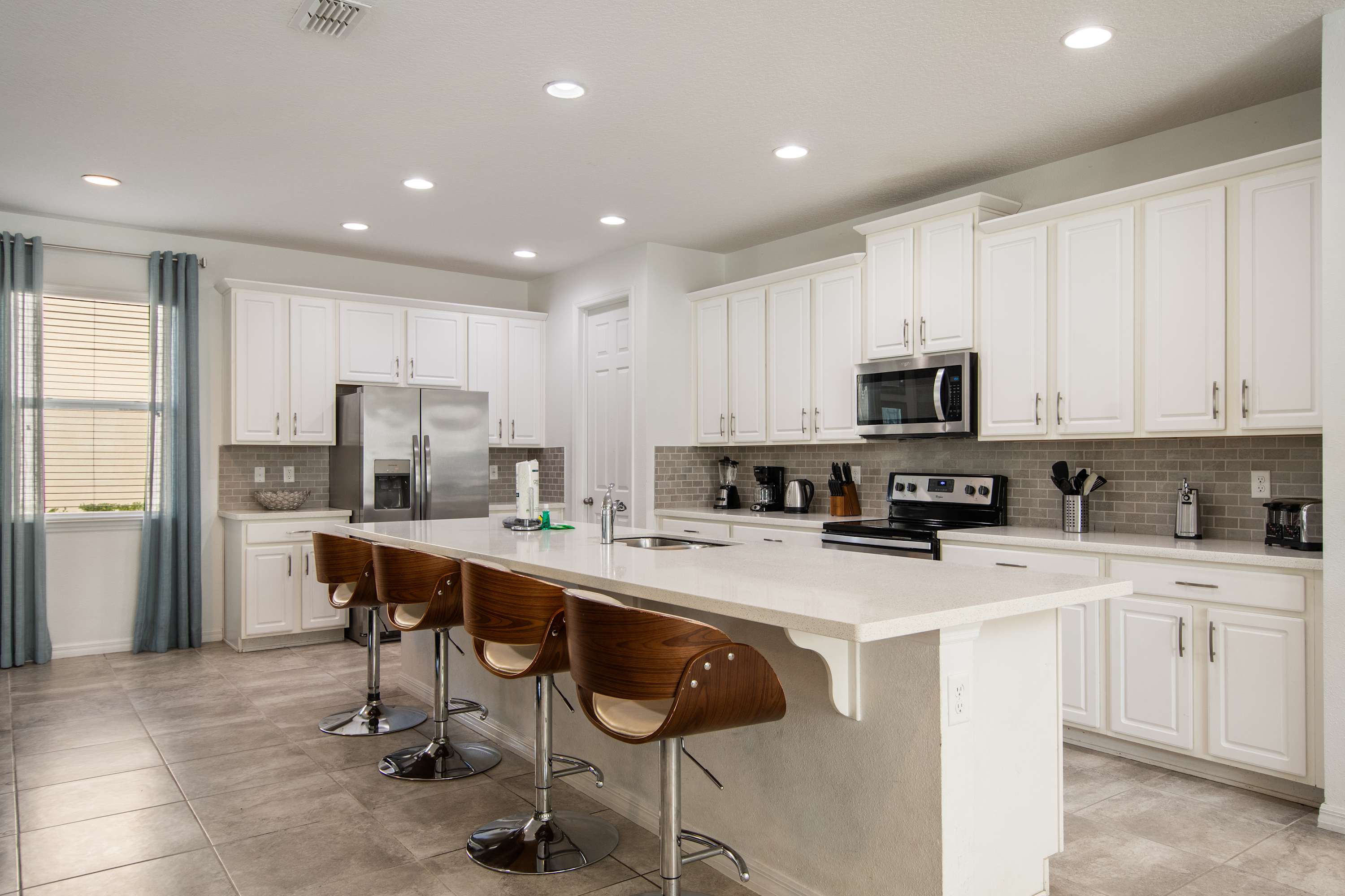 - Fully equipped modern kitchen with huge island seating