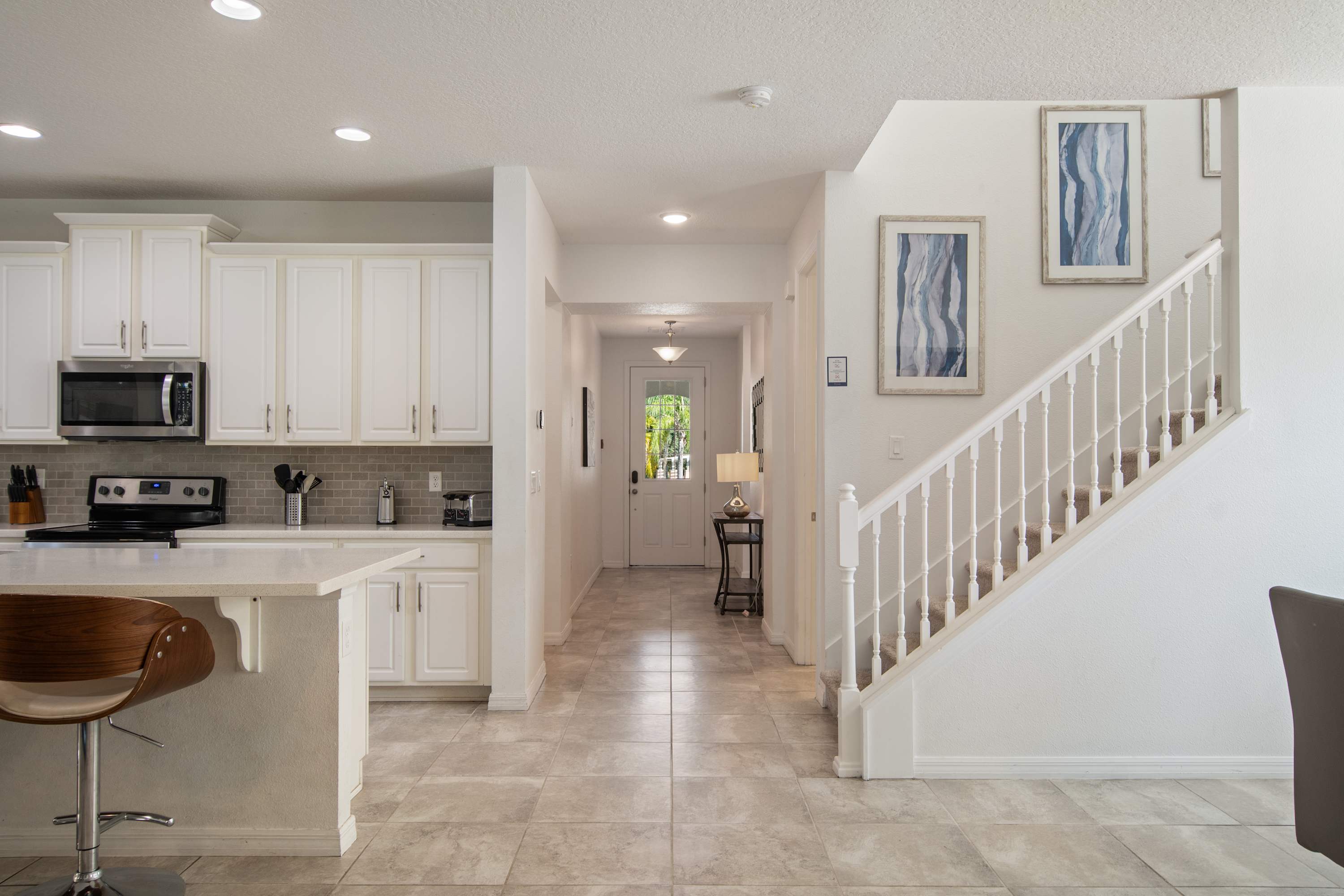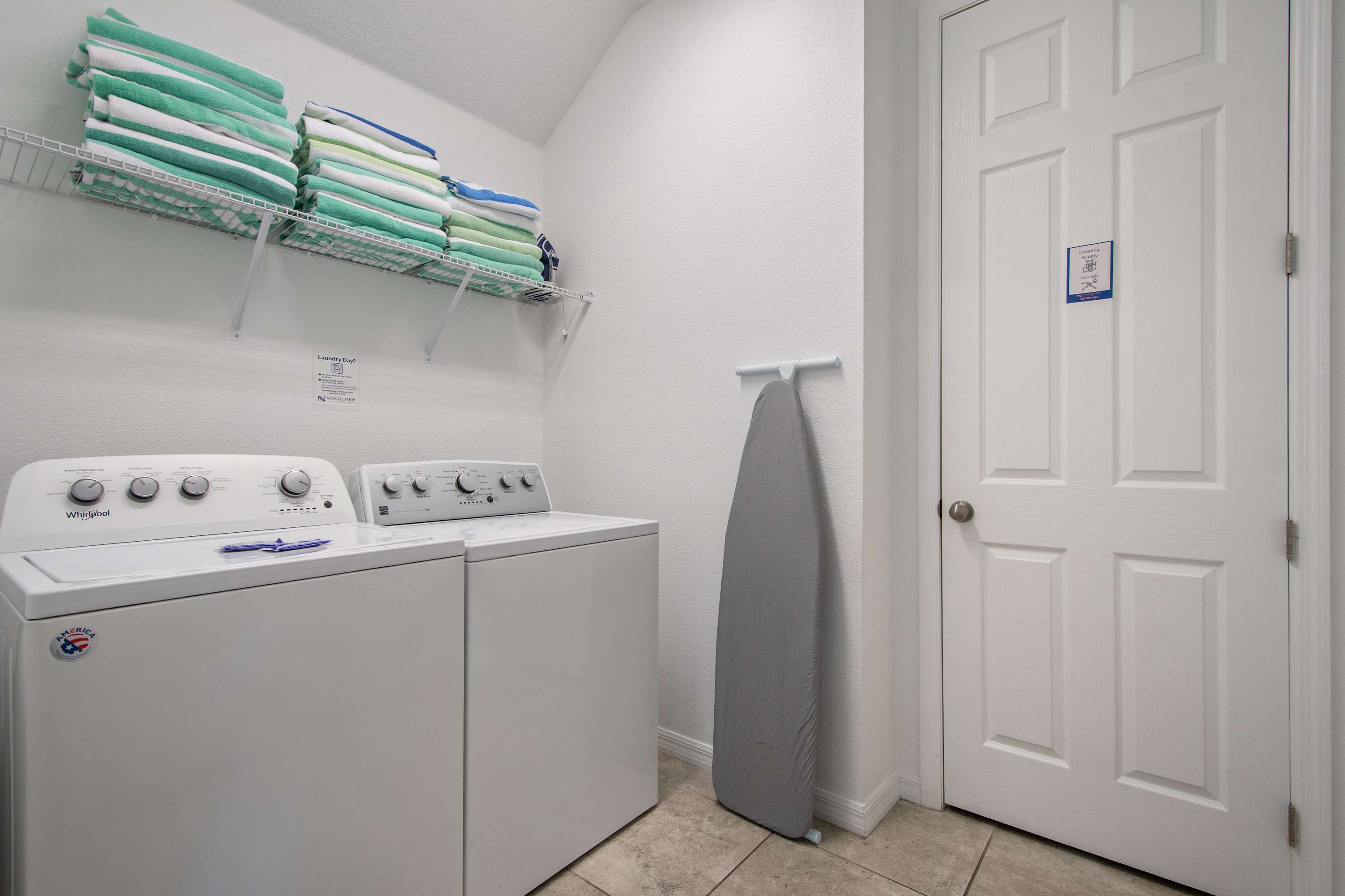 - Washer & dryer, iron, ironing board, vacuum, cookware & starter amenities