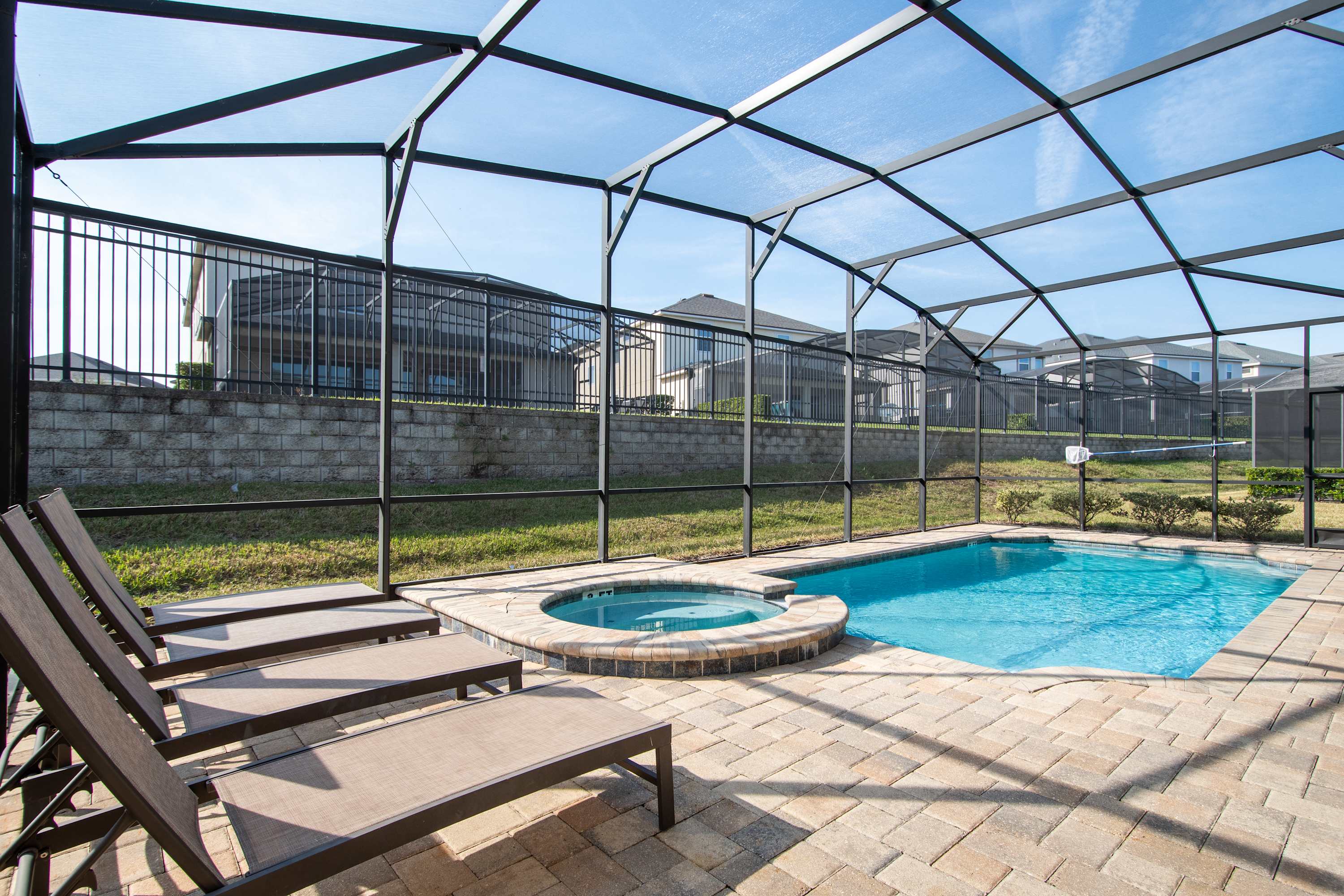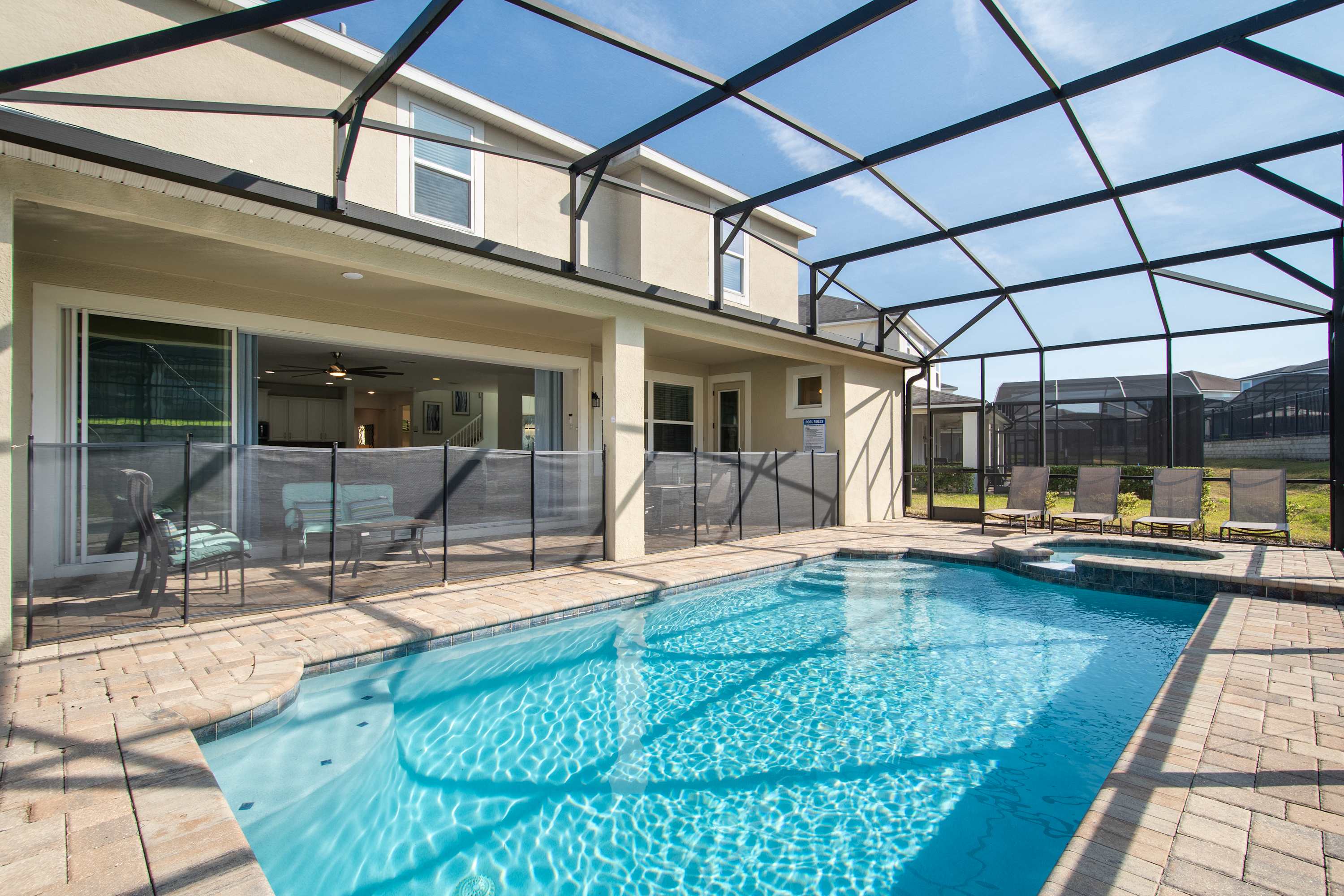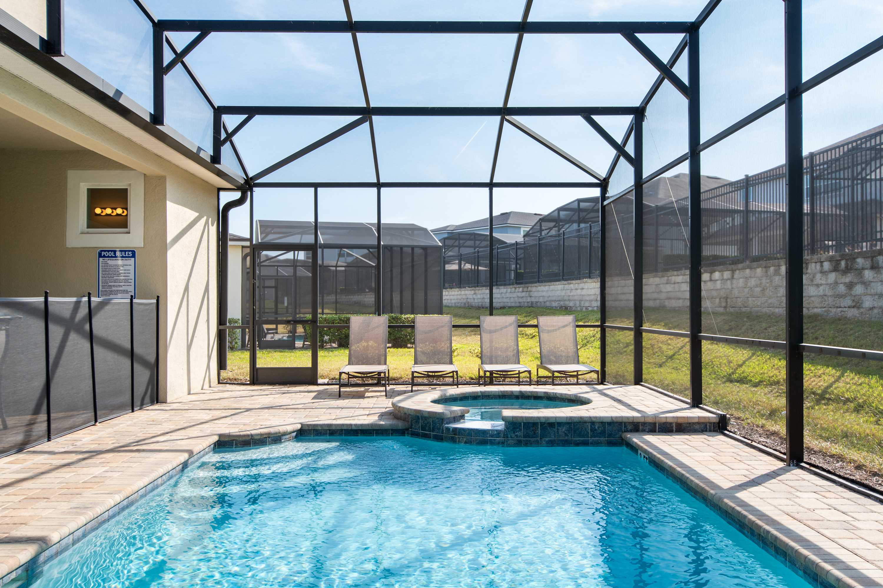 - Private screened-in pool + spa
