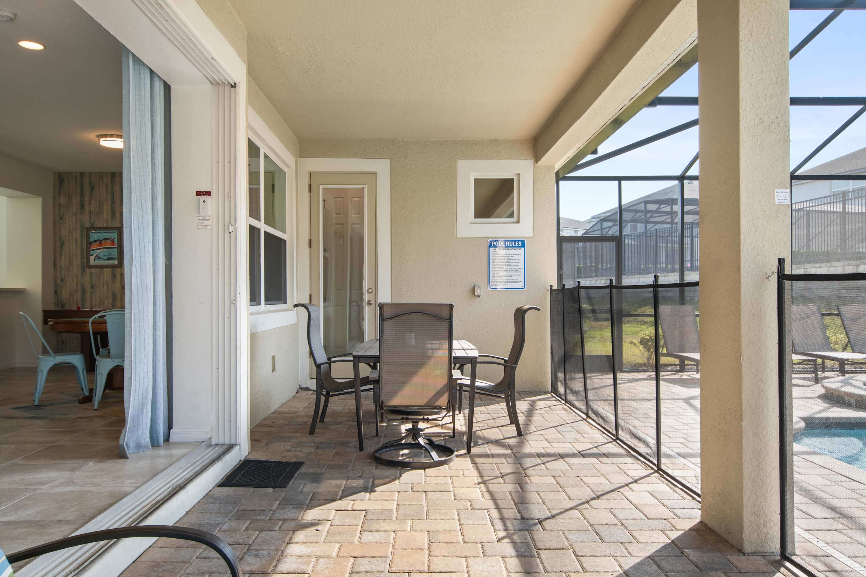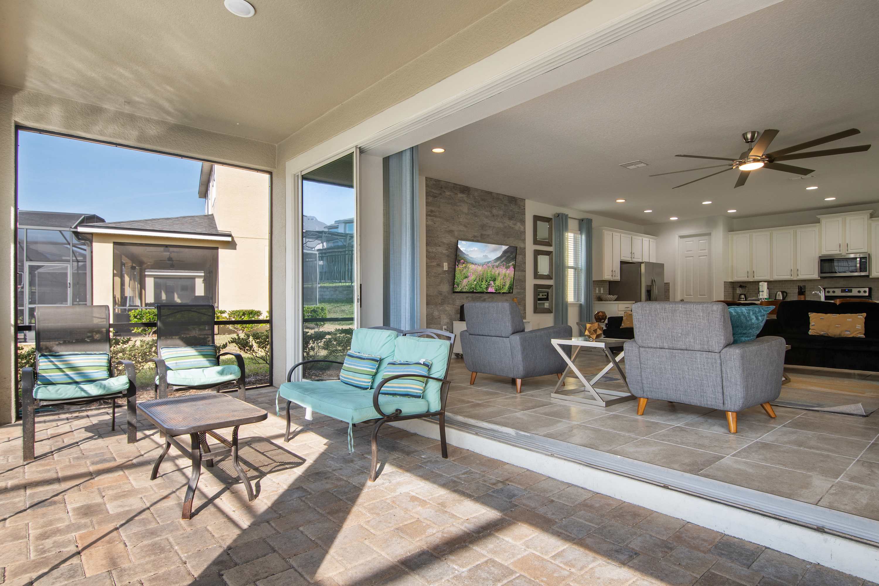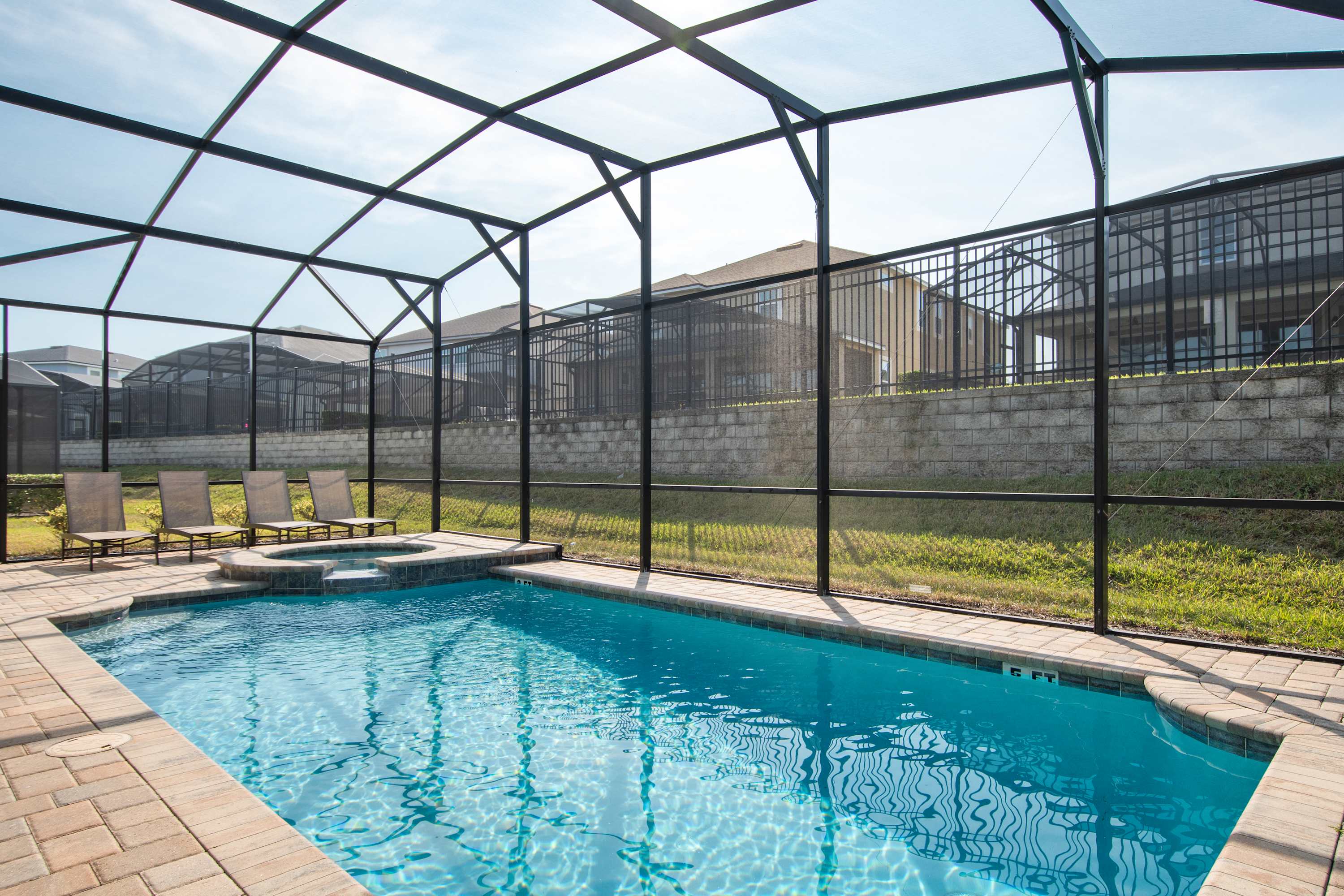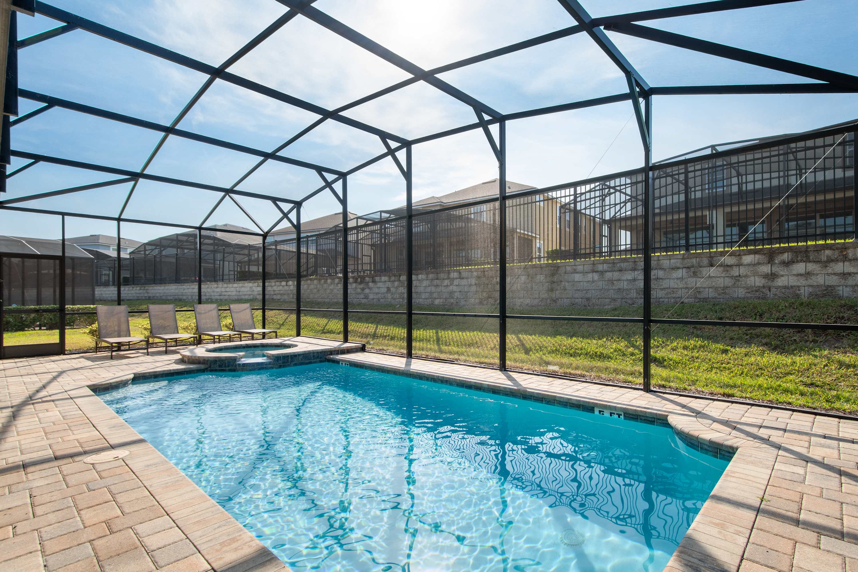 - Private screened-in pool + spa