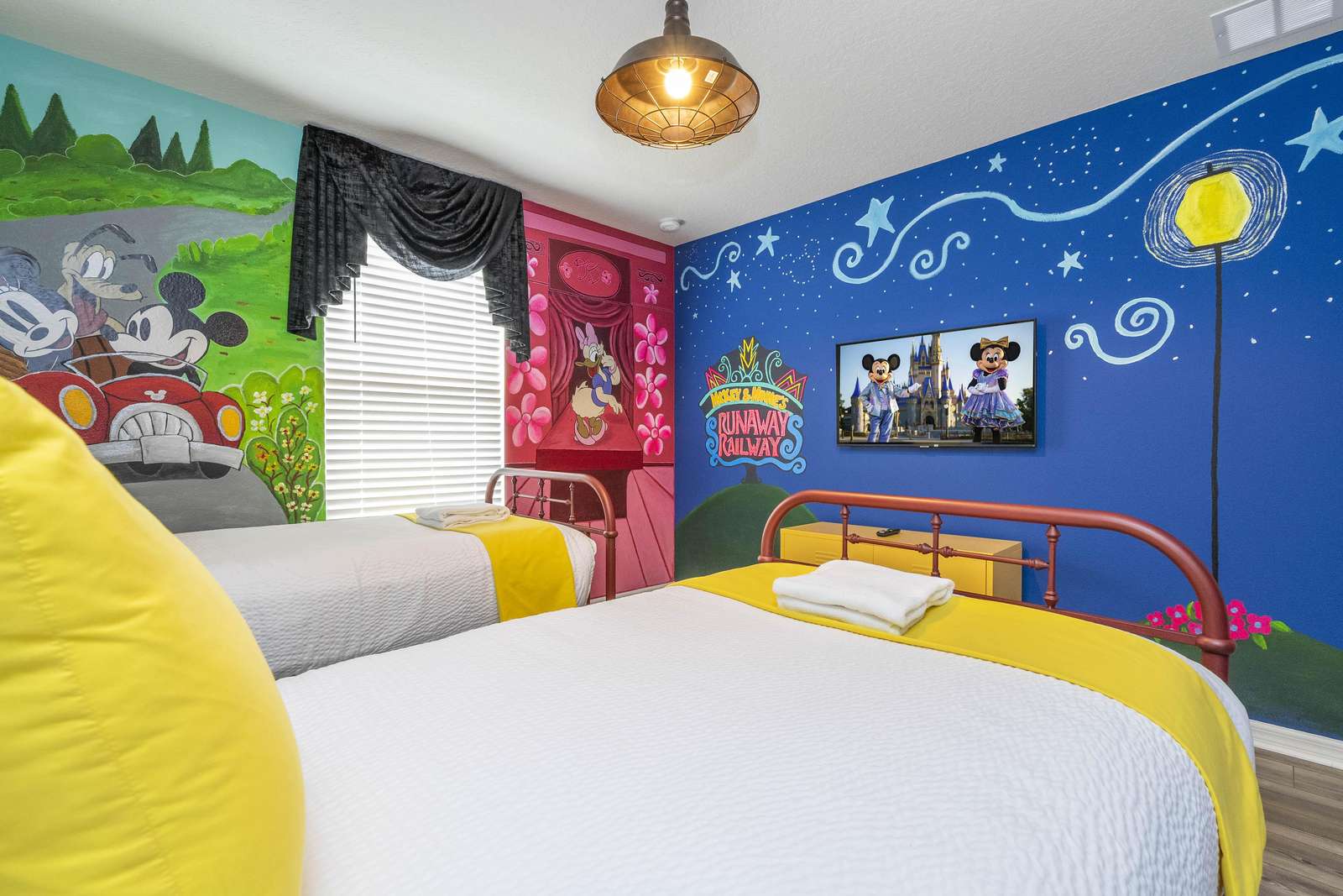 The home features several creative themed bedrooms that make the stay extra memorable. Kids will love the playful Mickey Mouse room and the immersive Minecraft room, while the stylish Broadway-inspired room adds a unique and creative atmosphere.