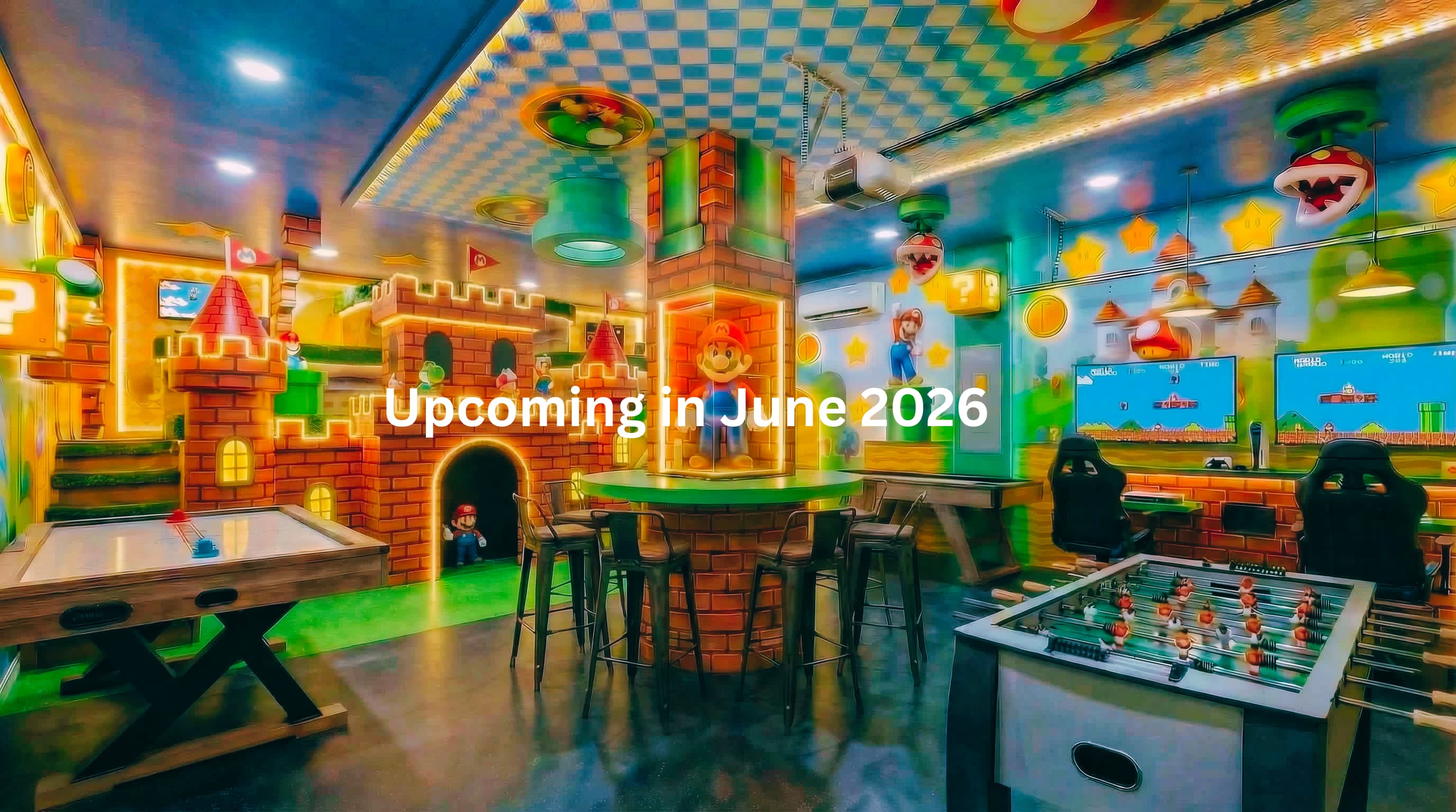 • Garage Game Room – Fun activities for family entertainment (MARIO Themed Game Room Upcoming in June 2026)