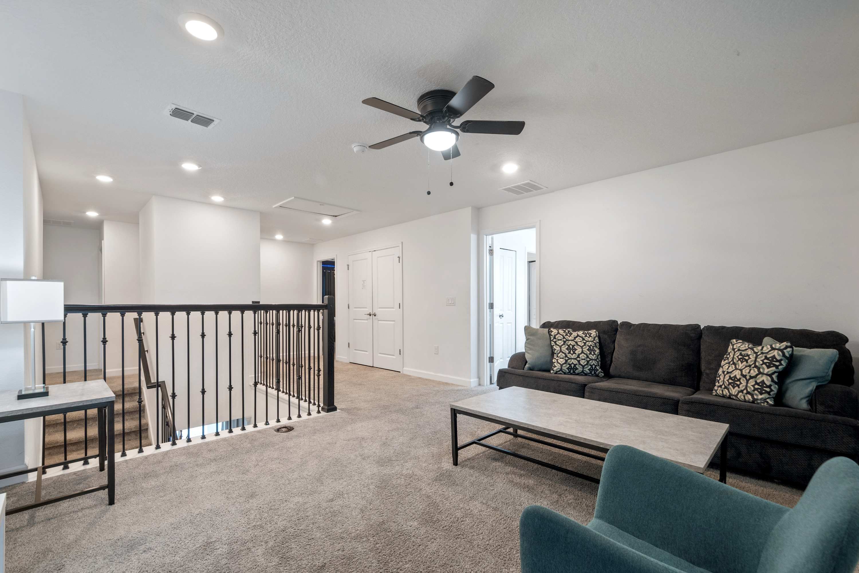 ✨ Relax in the living room while kids enjoy themed bedrooms or the upstairs loft, all within sightlines of the kitchen and dining space.