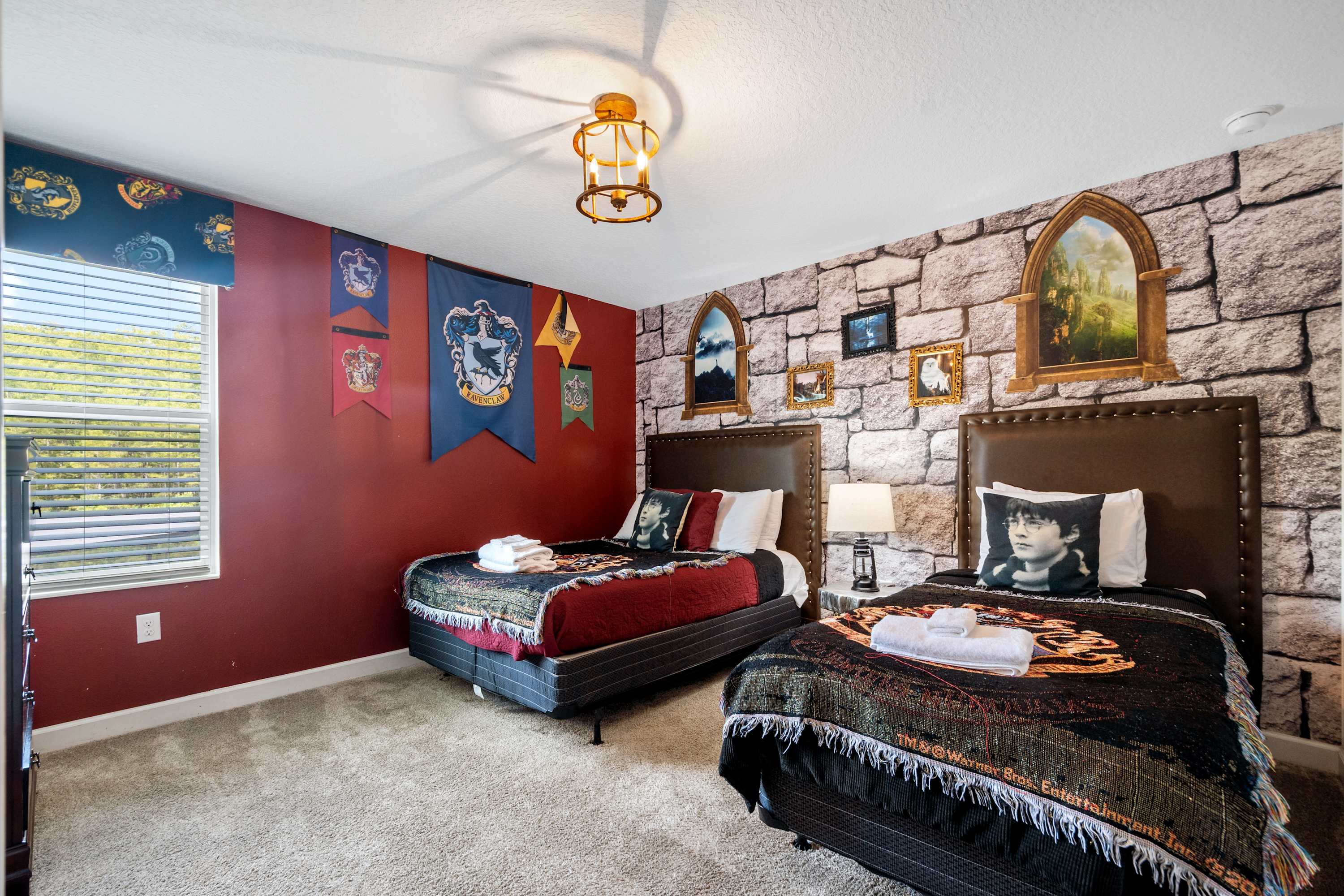 - Bedroom 6 – Harry Potter Theme (2F): Twin + Full, castle-inspired design