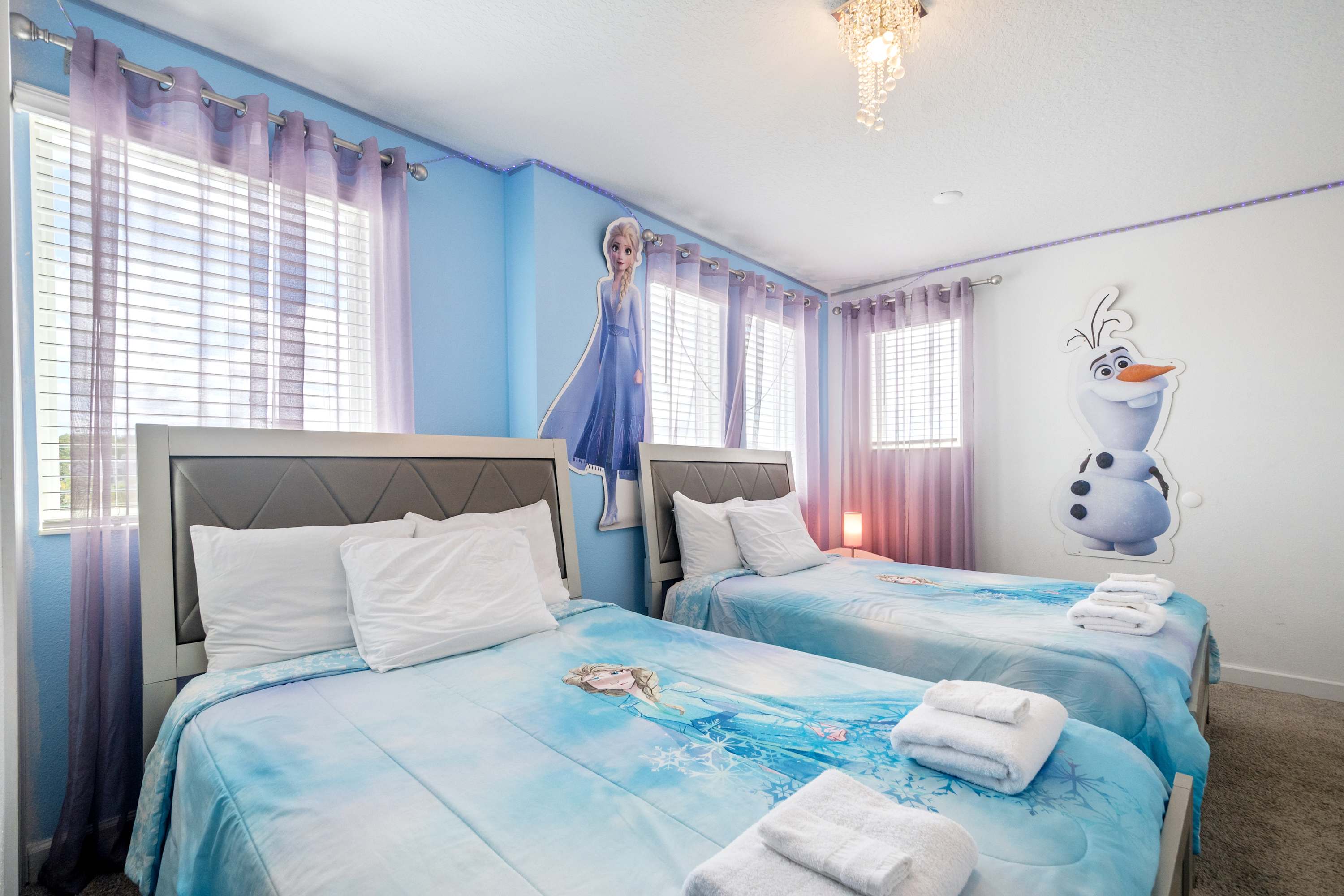 - Bedroom 8 – Frozen Theme (2F): 2 Full beds, shimmering Frozen décor