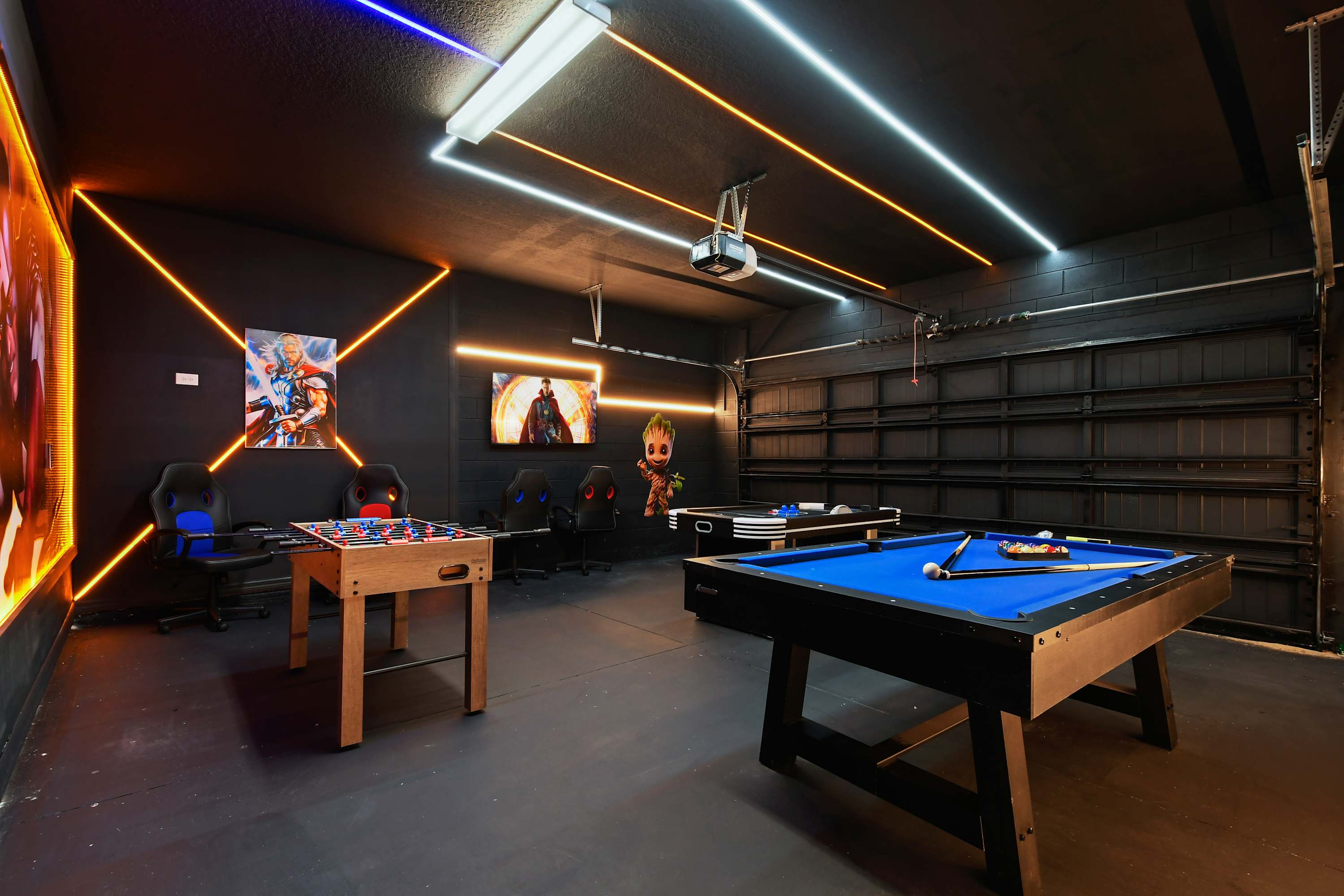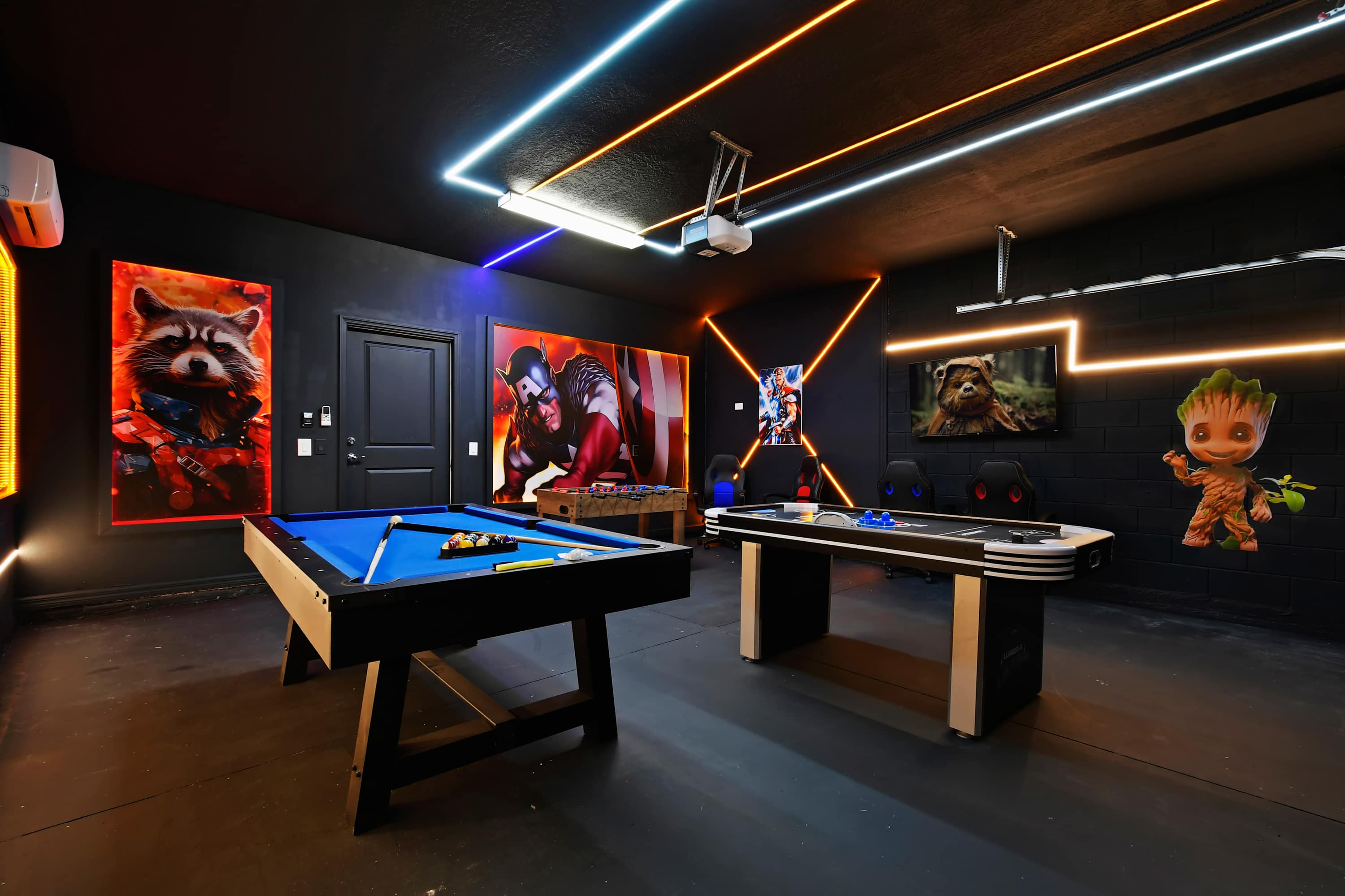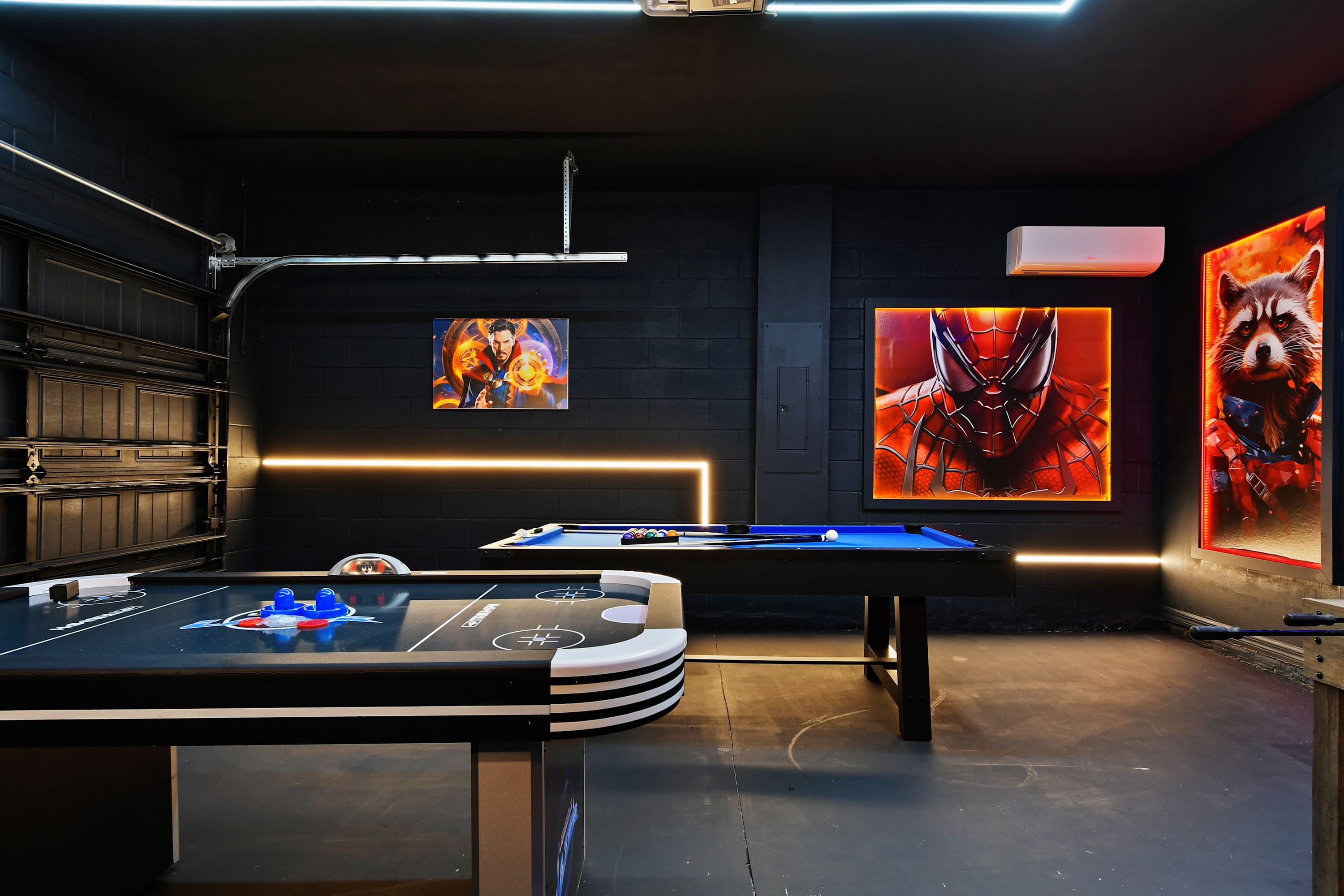 Step into a vibrant Marvel-themed game room built for all ages.