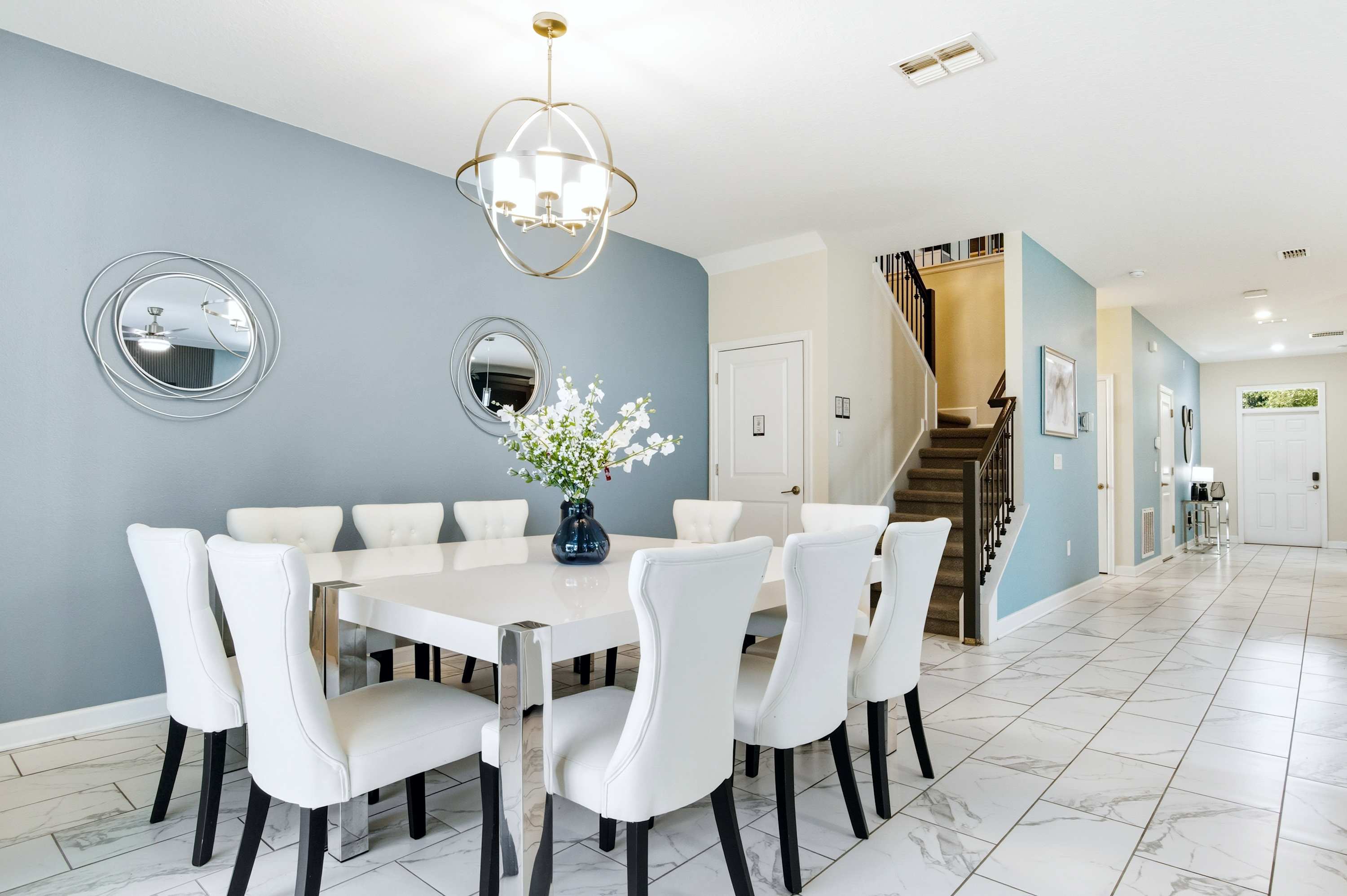 Step outside to your private outdoor paradise! Lounge by the heated pool, soak in the spa, or enjoy a meal at the outdoor dining table. Comfortable seating around the pool makes it easy to relax and enjoy the Florida sunshine. The pool safety fence ensures peace of mind for families with young children.